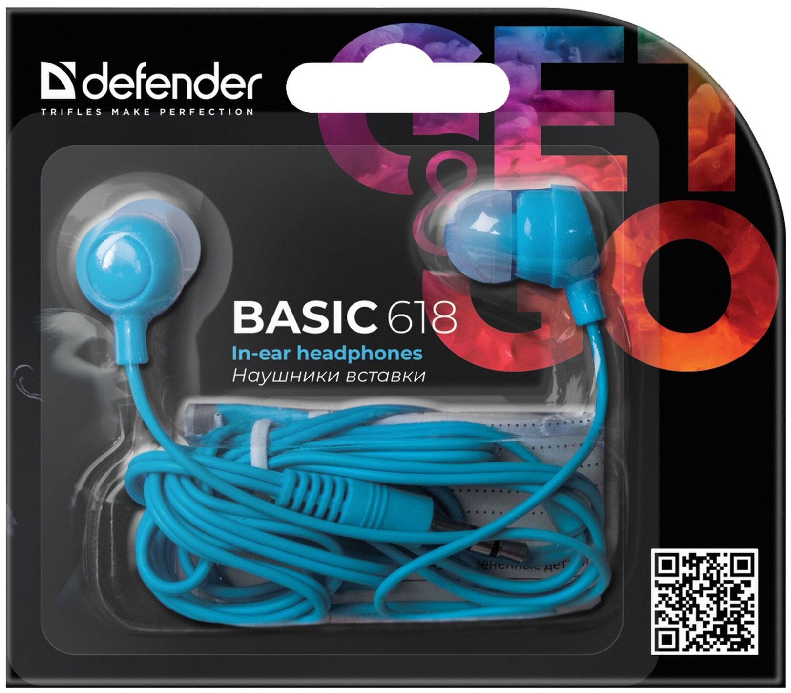 Наушники вкладыши Defender Basic-618 внутриканальные(затычки) - чёрные