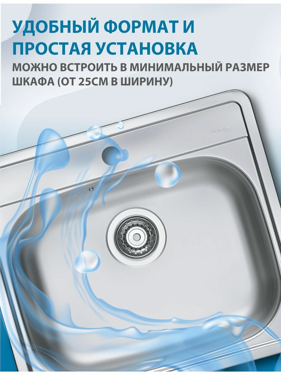 Мойка для кухни врезная нержавеющая сталь ALVEUS MORE 10 LEI-90 56 X50 см с сифоном. Цвет серый металлик