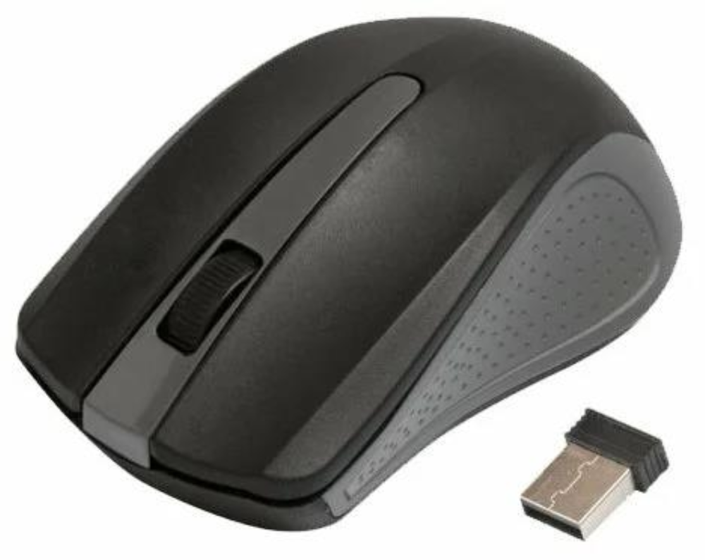 Мышь беспроводная RITMIX RMW-555, чёрный/серый, USB-Dongle. Разрешение: 1000 dpi. Кнопок: 2 + колесо кнопка. Радиус: 8-10 м. Источник питания: 2ААА(приобретаются дополнительно). (1/100)