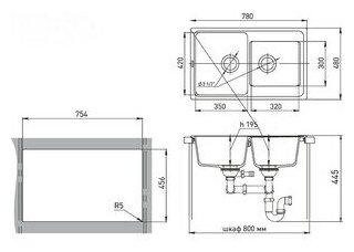 Мойка EWIGSTEIN Elegant 80D 780*480 2 чаши (топаз)