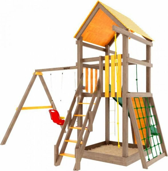 | В комплекте | веревочная лестница, качели, канат, лестница, сетка для лазания, песочница, скалолазная стенка, турник |