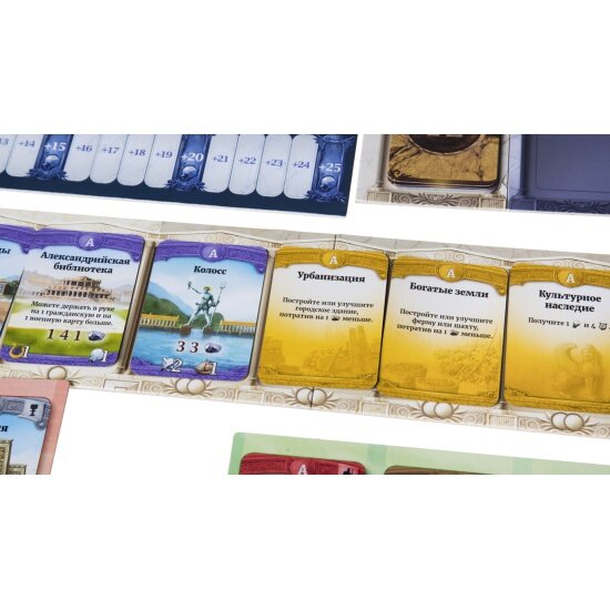| Плюсы: | Отличная комплексная "Цивилизация" на карточном движке. Компоненты хорошего качества. Карты довольно плотные. Внутри органайзер, что для такого количества карт и других компонентов не мало важно. |