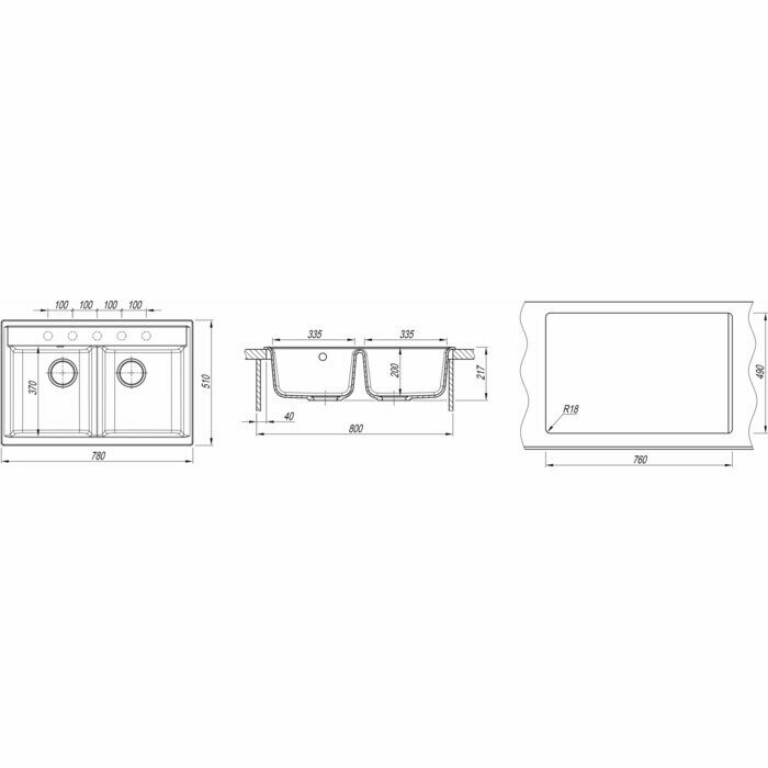 мойка DR.GANS Астра 780 780х510х217мм черный
