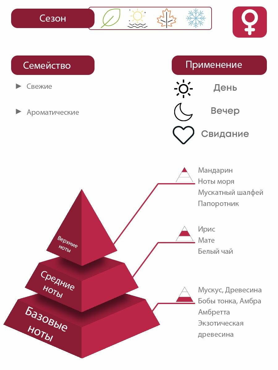 | Плюсы: | Лёгкий, невесомый аромат под белую рубашку или футболку. Свежесть чая и цитрусов, чистота мускуса и пудровая бархатистость ириса, немного зелёный, немного морской, с ноткой пены для бритья.