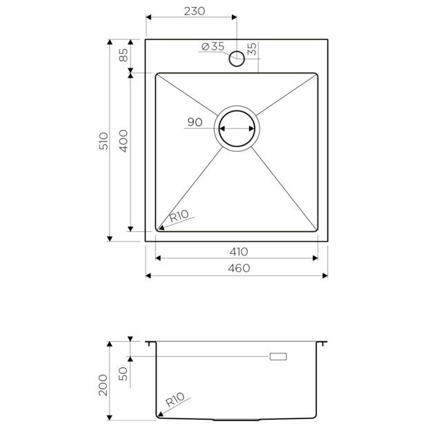 Кухонная мойка OMOIKIRI Akisame 46-IN 46х51см нерж.сталь/нержавеющая сталь