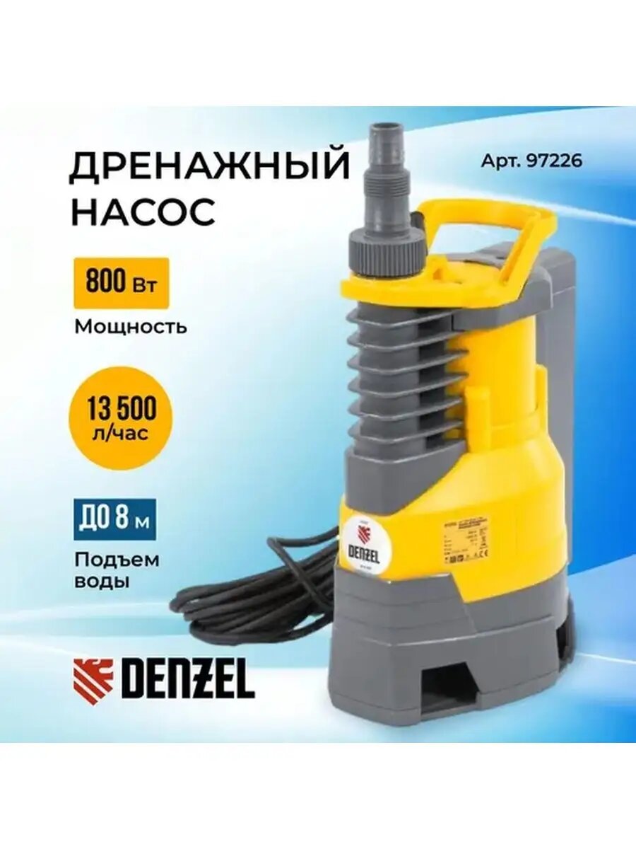 Дренажный насос Denzel DPХ800 800 Вт, подъем 8 м, 13500 л/ч 97226
