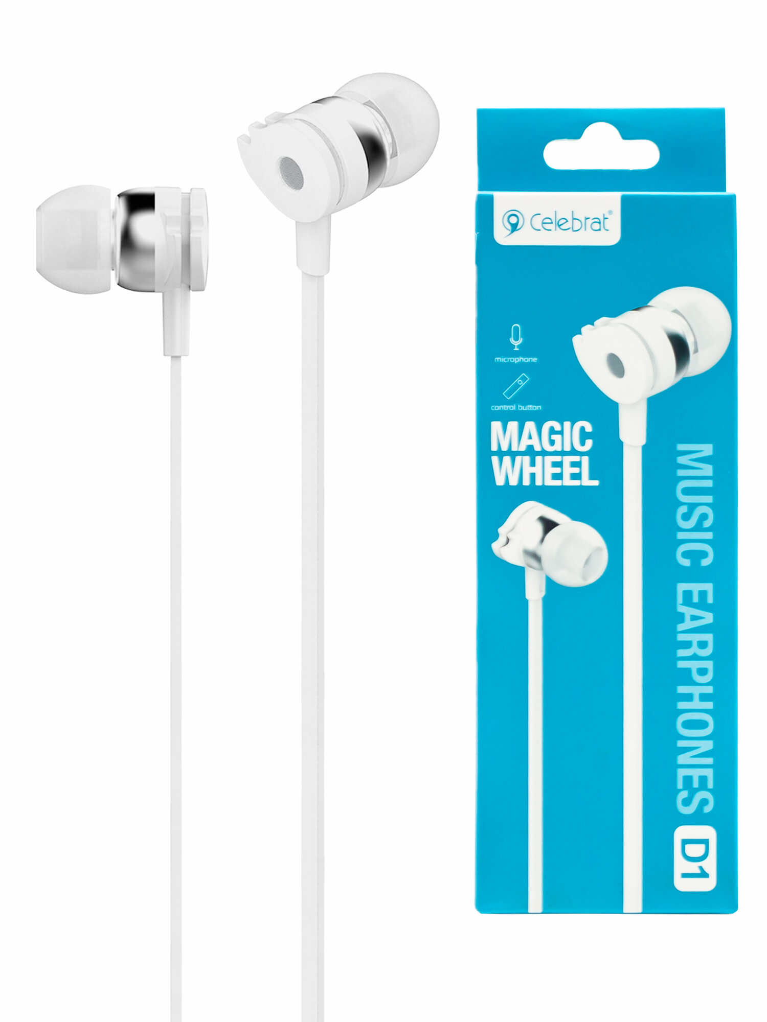 Наушники внутриканальные с микрофоном Celebrat D1, 3.5mm Audio Pin, 1,2m кабель, белые