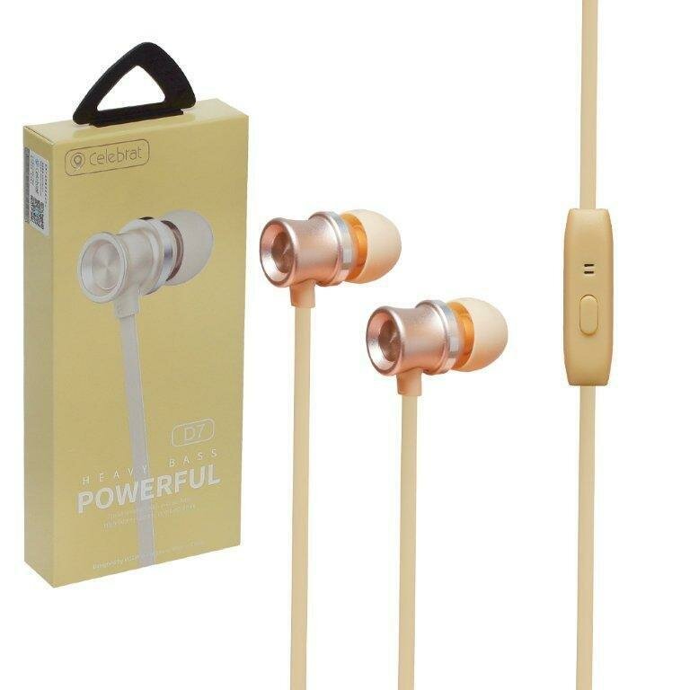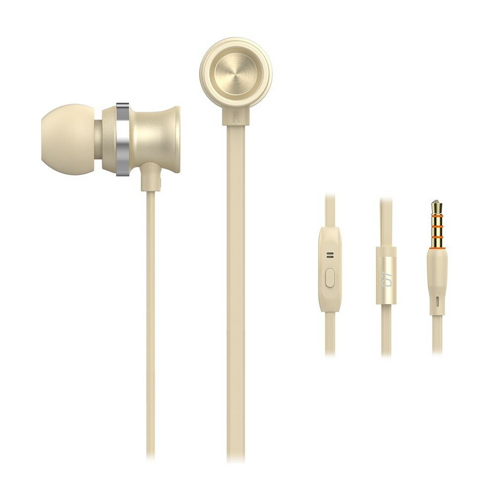 Наушники внутриканальные с микрофоном Celebrat D7, 3.5mm Audio Pin, 1,2m кабель, золото