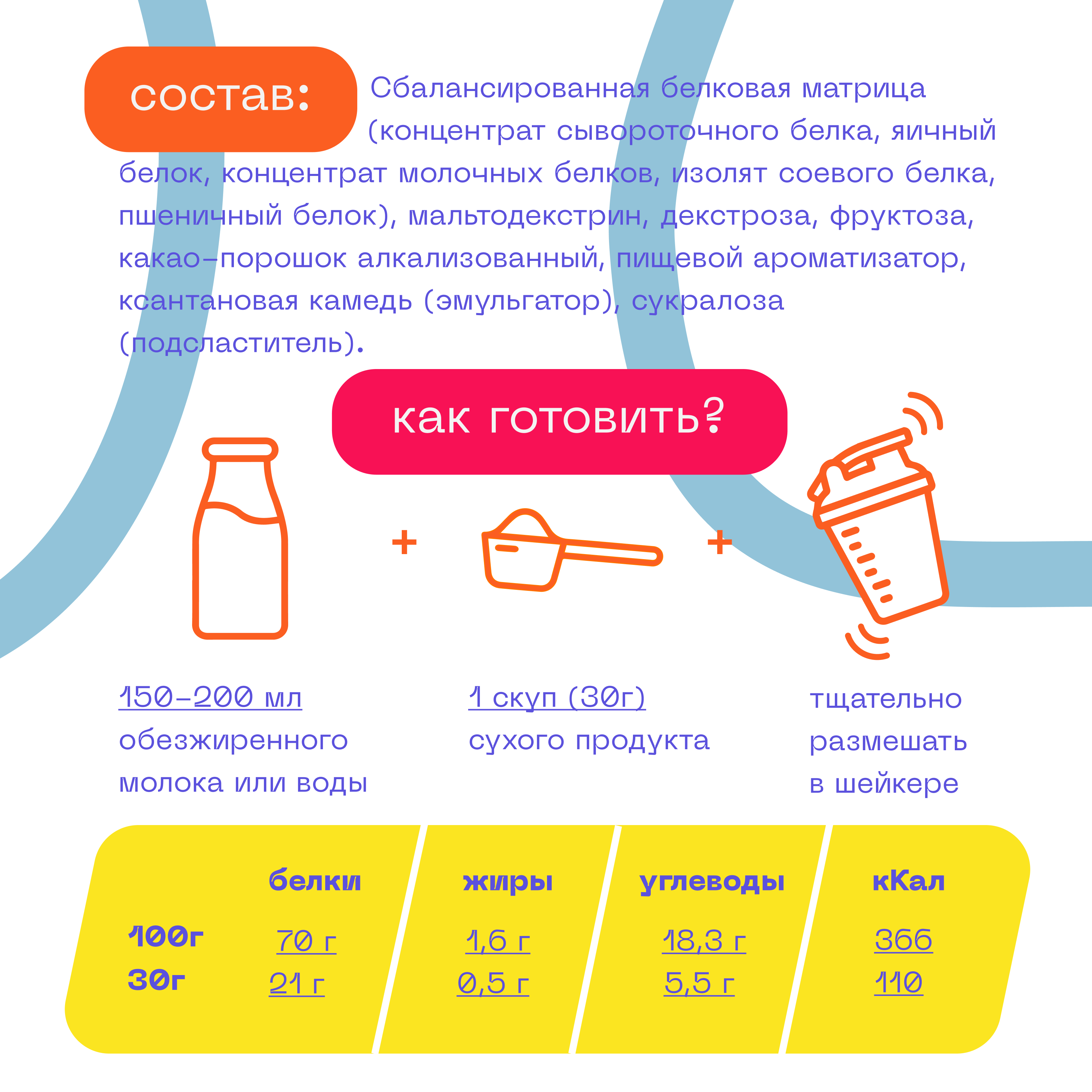 | Плюсы: | Насыщенный вкус,густой,вполне подходит как приём пищи после тренировки! |