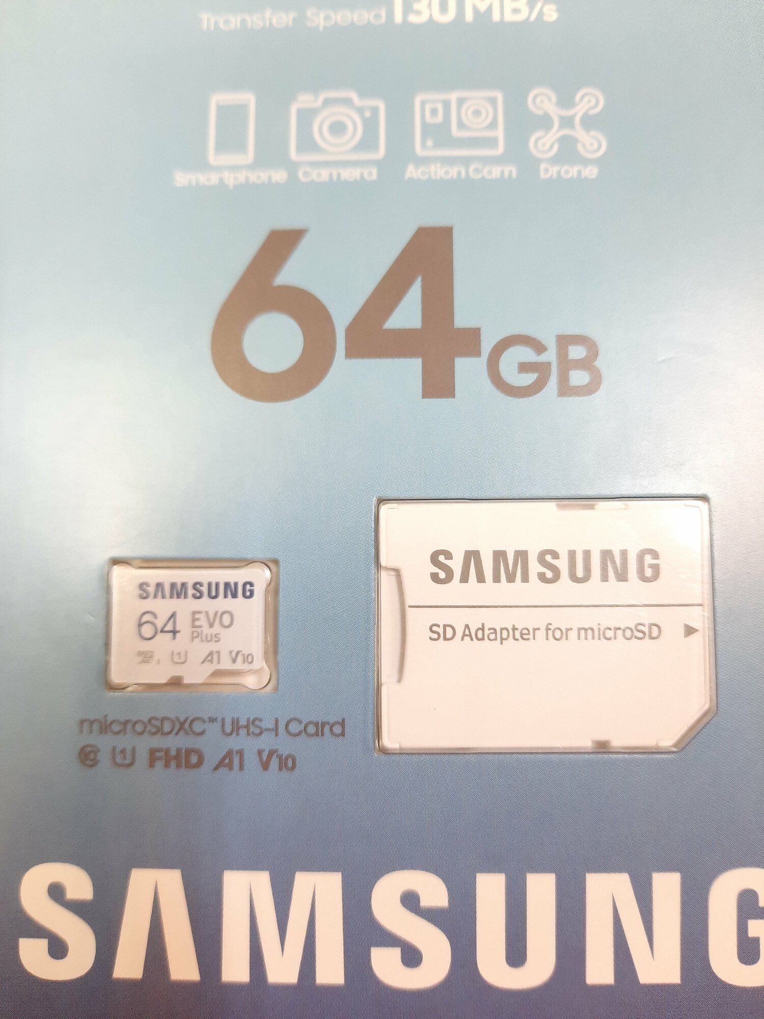 Ниже Вы можете прочитать отзывы на Карта памяти Samsung microSDXC 64 ГБ Class 10, V10, A1, UHS-I, R/W 130/130 МБ/с, адаптер на SD, 1 шт., белый, ознакомится с подробными характеристиками, посмотреть интересные обзоры и фотографии на Карта памяти Samsung microSDXC 64 ГБ Class 10, V10, A1, UHS-I, R/W 130/130 МБ/с, адаптер на SD, 1 шт., белый.
