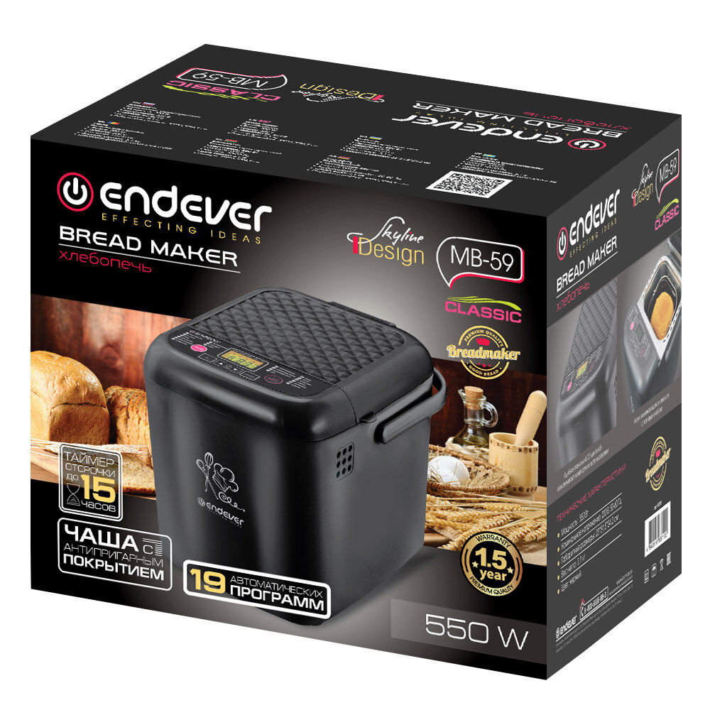 Хлебопечь ENDEVER Skyline MB-59 /550 Вт,19 прогр., таймер,вес выпечки 450/600 гр/