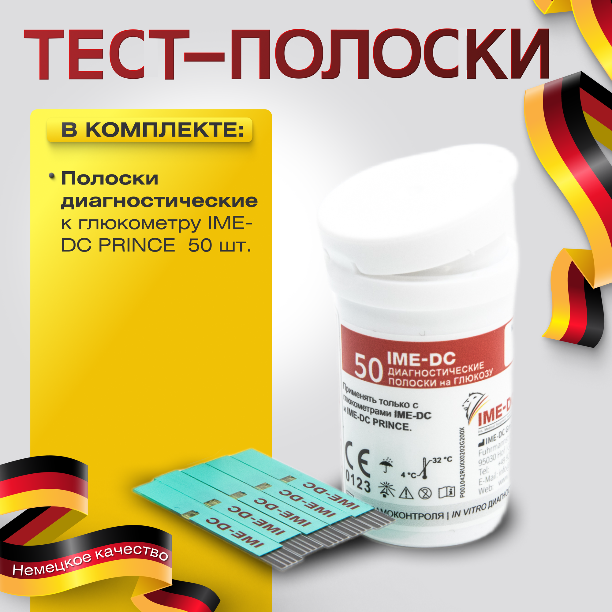 Тест-полоски для глюкометра IME-DC PRINCE 50 шт. (07.2025 г.)