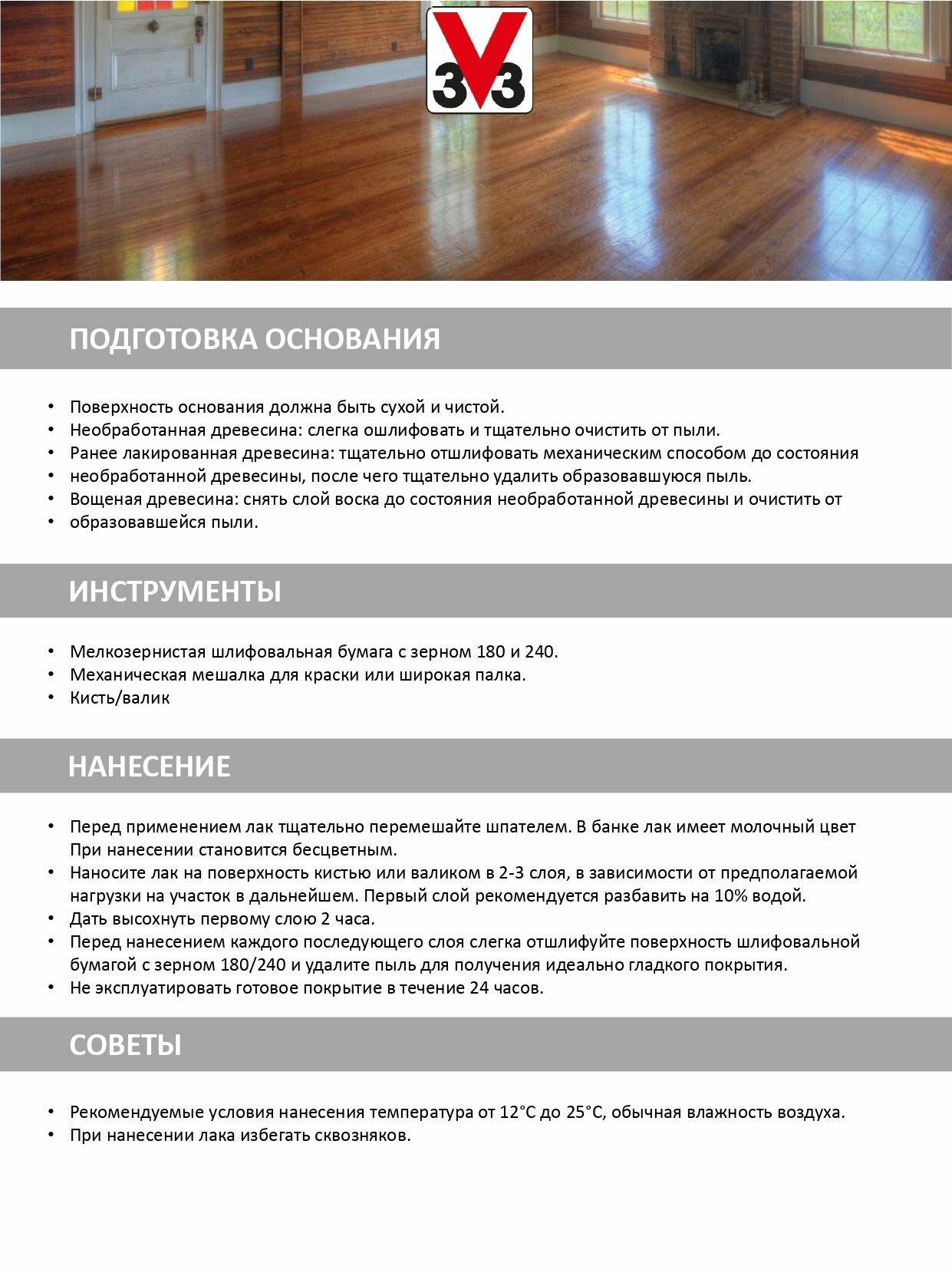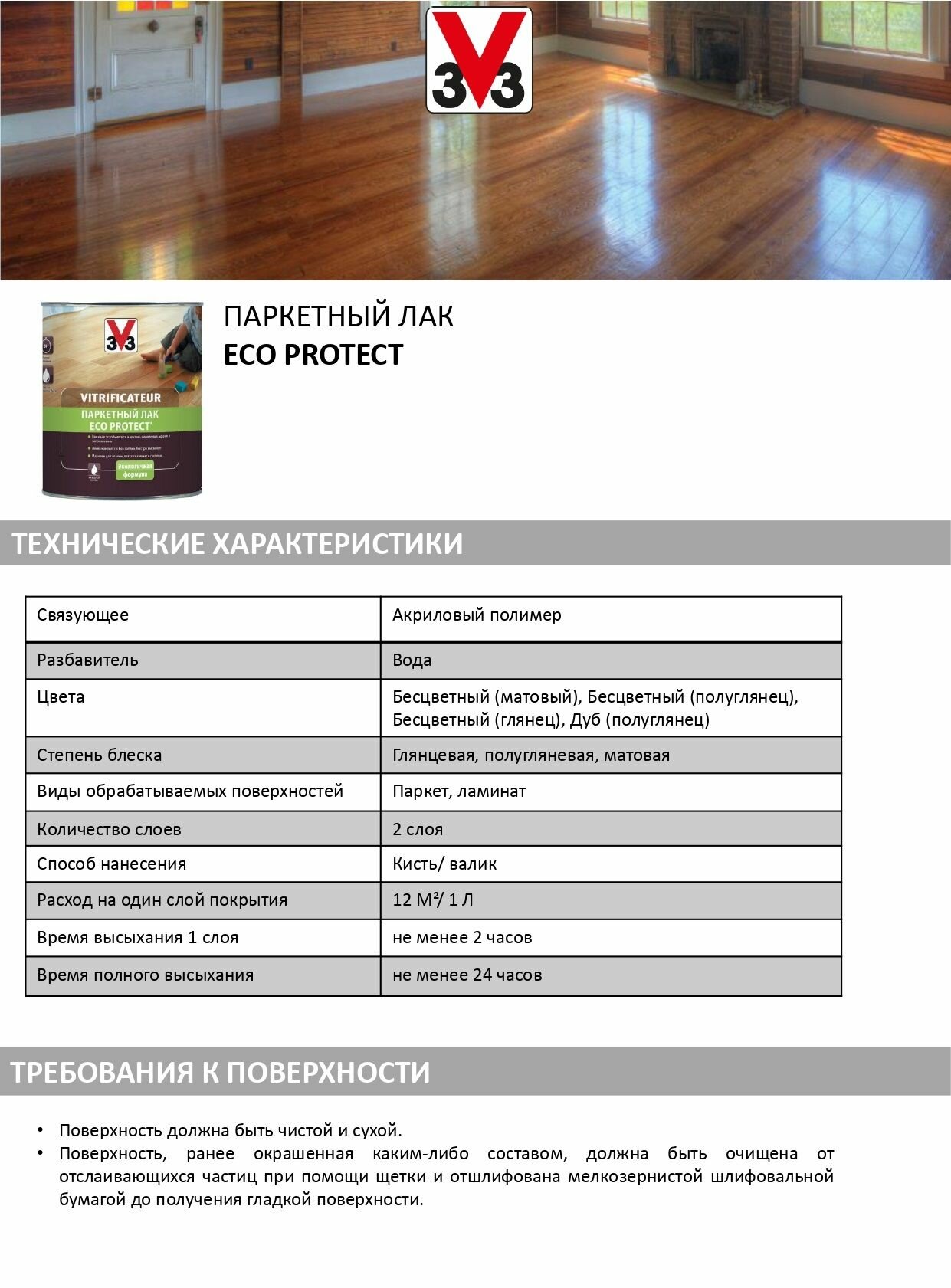 Лак паркетный V33 "Eco Protect", матовый, цвет: бесцветный, 750 мл