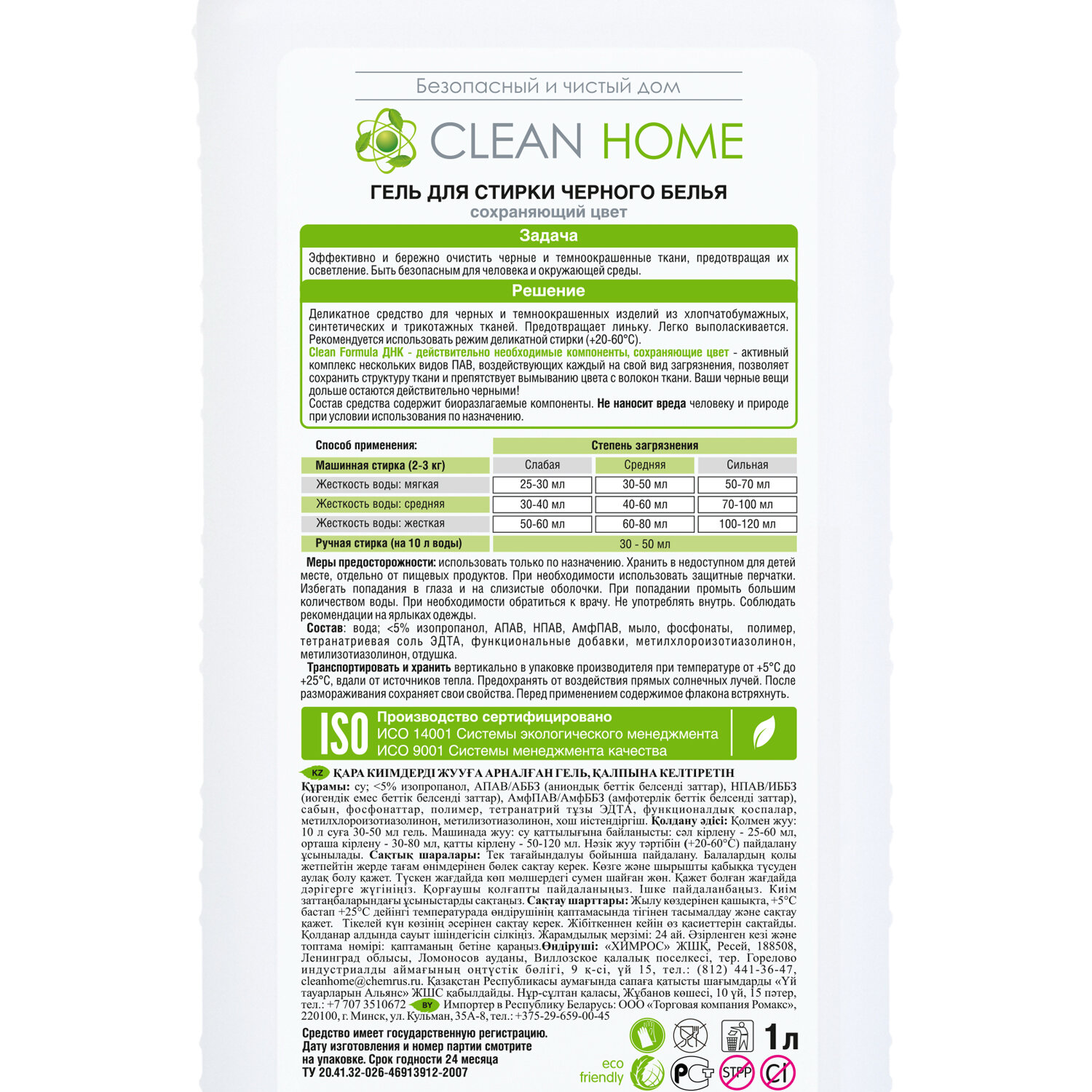 Гель для стирки CLEAN HOME черного белья сохраняющий цвет 1л 4606531205028