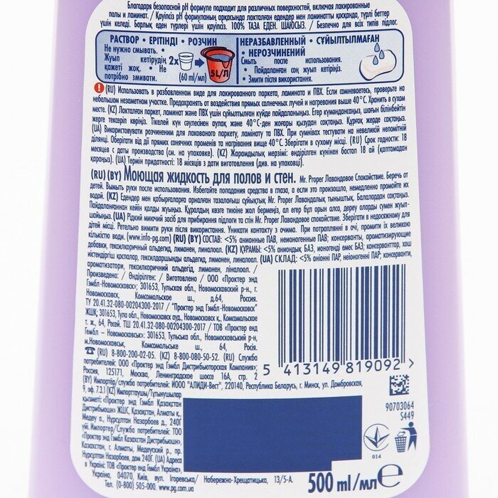Mr. Proper Моющая жидкость для полов и стен Лавандовое Спокойствие, 500мл