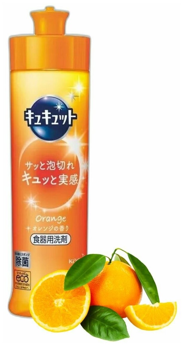 Купить Kao Kyukyutto Средство для удаления жира и мытья посуды, овощей и фруктов с ароматом Апельсина 240 мл