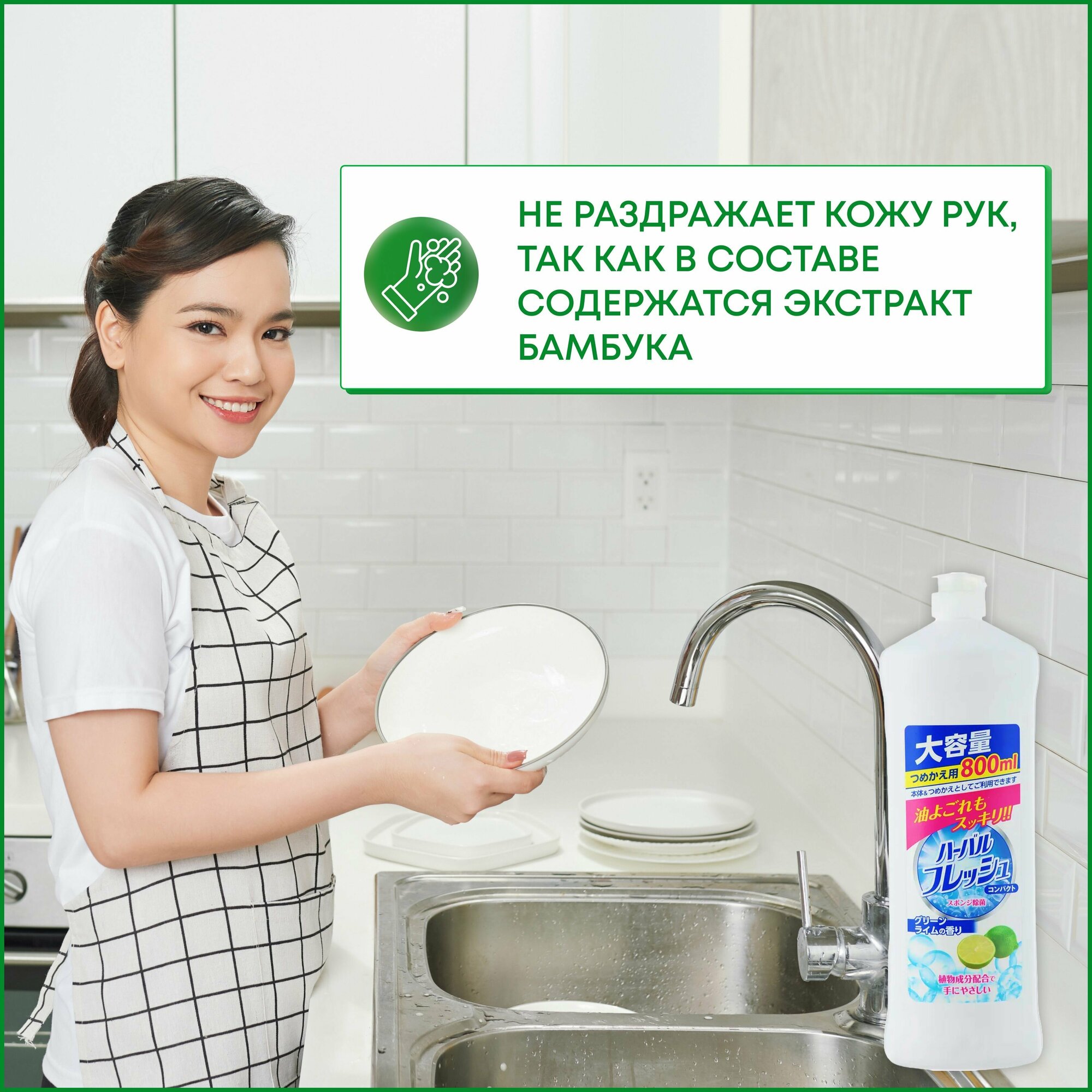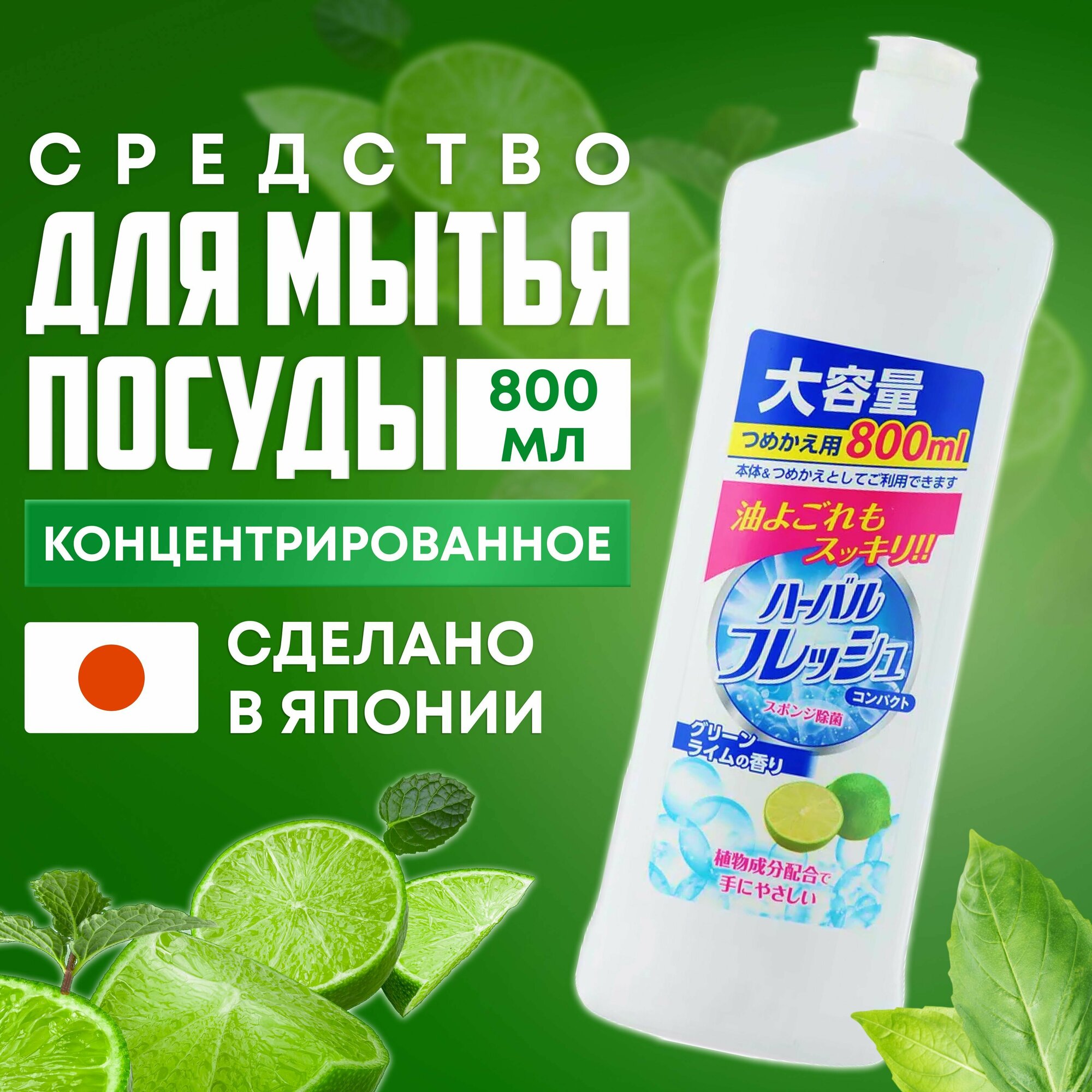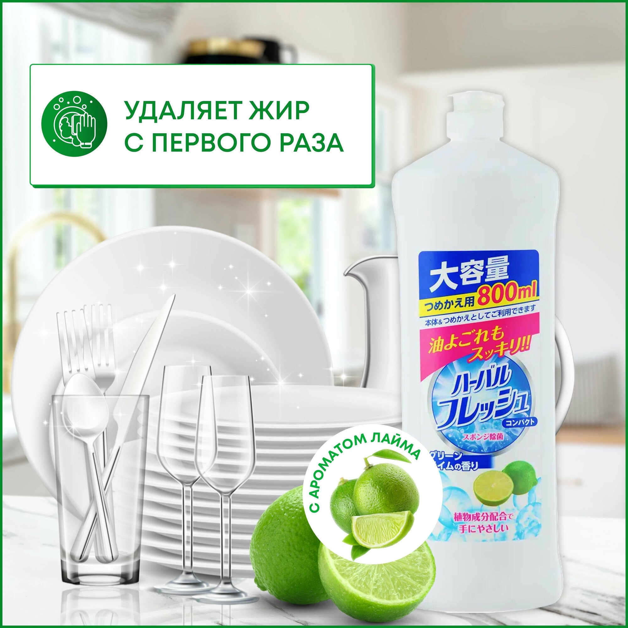 Японское концентрированное средство для мытья посуды, овощей и фруктов, с ароматом лайма, 800 мл, Mitsuei, Япония