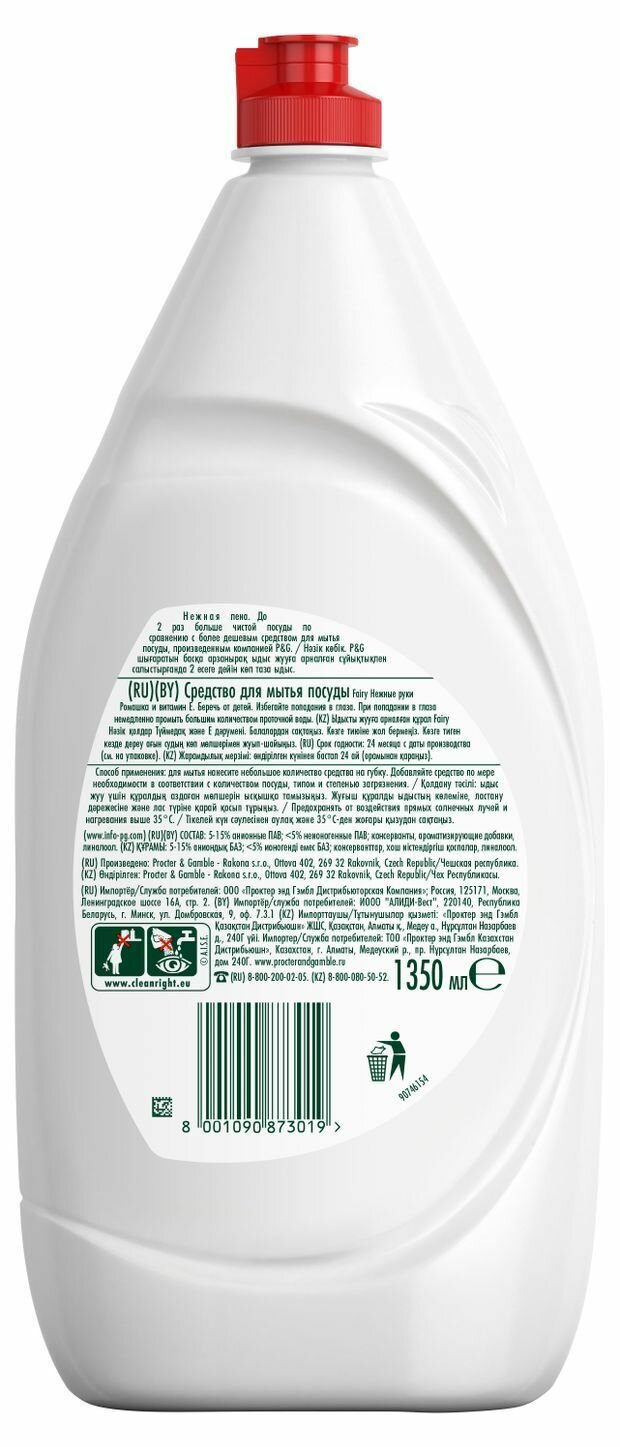 Средство для мытья посуды 1,35 л FAIRY (Фейри) Нежные руки, "Ромашка и витамин Е", 740297 (арт. 606048)