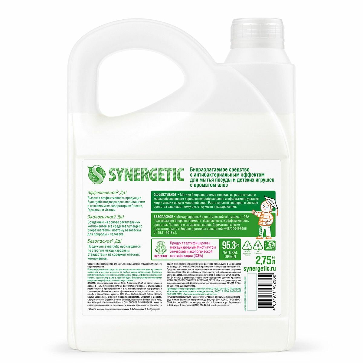 Средство для мытья посуды и детских игрушек SYNERGETIC биоразлагаемое с ароматом алоэ, 1л