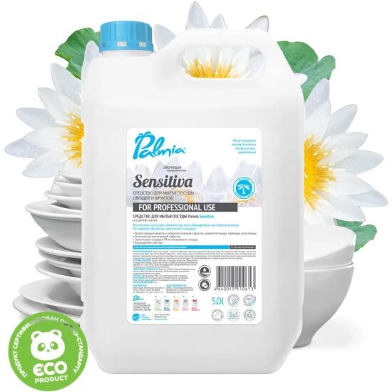 Palmia Sensitiva гипоаллергенное средство для мытья посуды, овощей и фруктов (канистра) 5л.