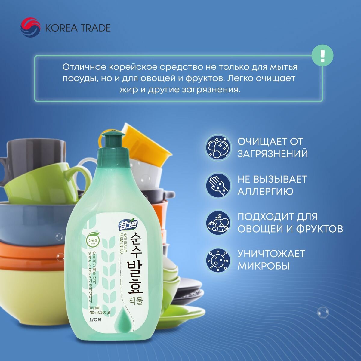 СохранитьLION CHARMGREEN Pure Fermentation 480ml Средство для мытья посуды, овощей и фруктов (Горные травы) интересное: