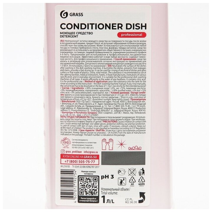 Купить Средство для посудомоечных машин Grass Conditioner Dish 1 л 216100