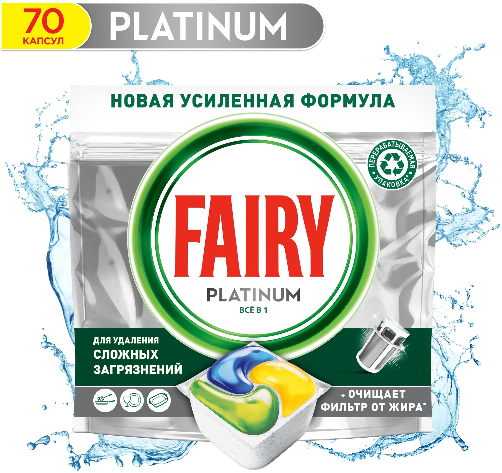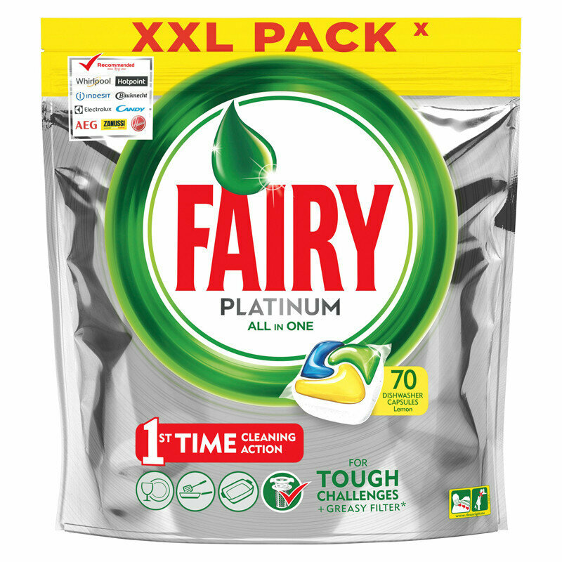 Fairy Platinum All in 1 капсулы, лимон для посудомоечной машины, 70 шт.