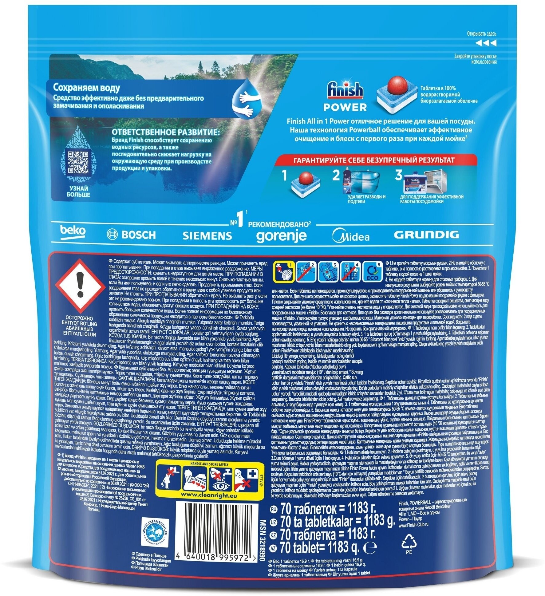 | Плюсы: | Самое эффективное моющее средство для мытья посуды с использованием посудомоечных машин. |