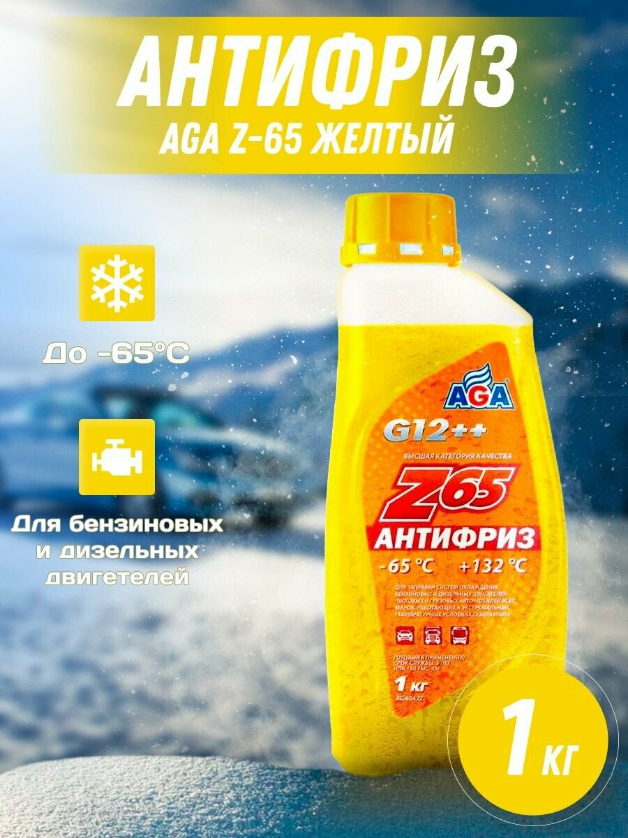 Антифриз AGA "Z65", готовый к применению, желтый, G-12++, до -65С, 1кг.