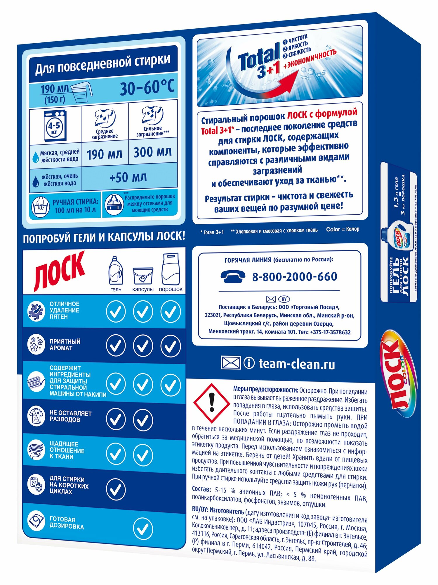 Стиральный порошок Losk Color (автомат) 0.45 кг картонная пачка