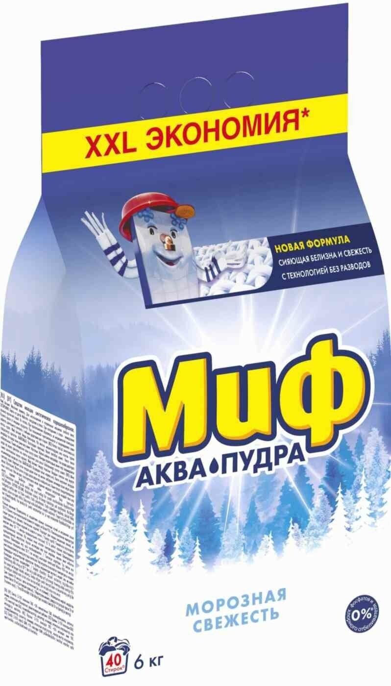 Порошок стиральный Миф Аквапудра для любого вида белья аромат морозной свежести автомат 2кг / моющее средство