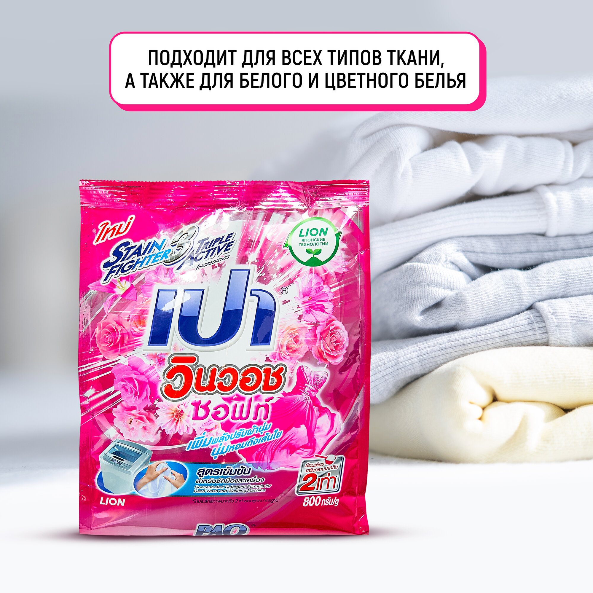 LION Pao Win Wash Soft Порошок стиральный для всех типов стиральных машин 800 г интересное: