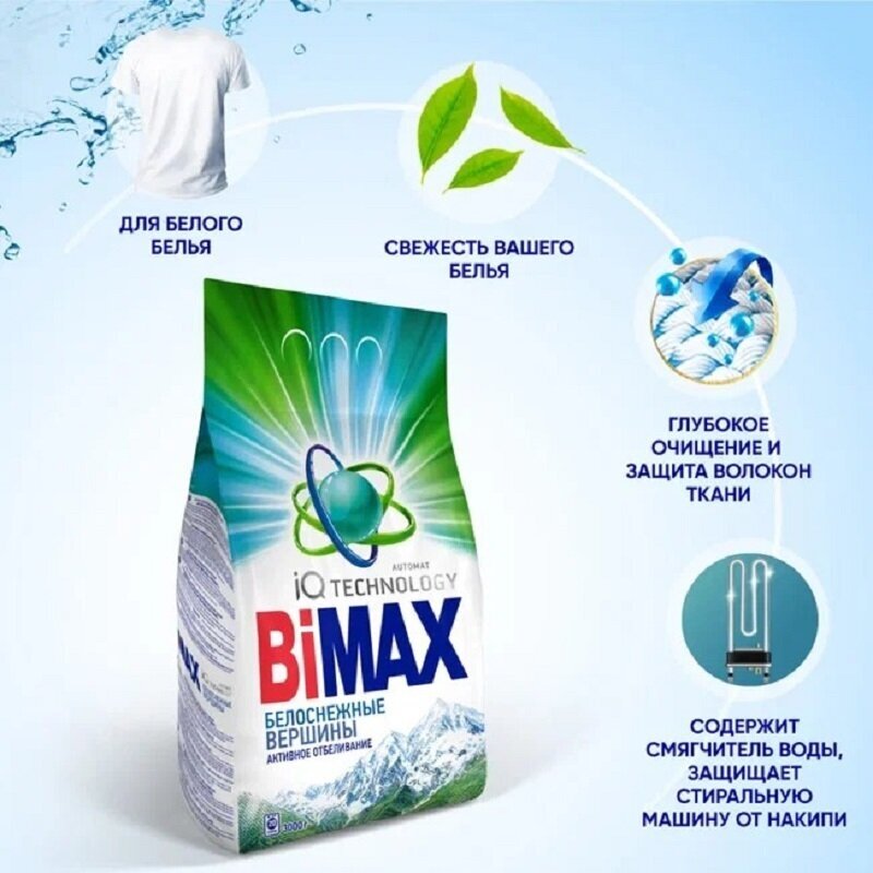 Стиральный порошок BiMax (Бимакс) "Белоснежные вершины", 3 кг для белого и светлого белья