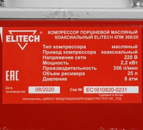 Компрессор масляный Elitech КПМ 360/25 интересное: