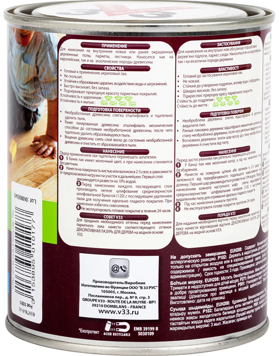 Лак V33 Eco Protect Паркетный полуглянцевый 5л