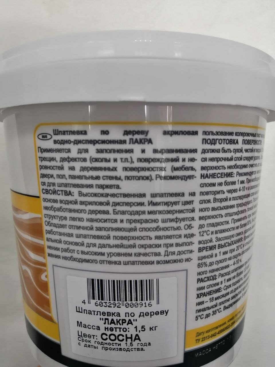 Шпатлевка готовая лакра по дереву 0,6кг сосна, арт.шпсосна0,6