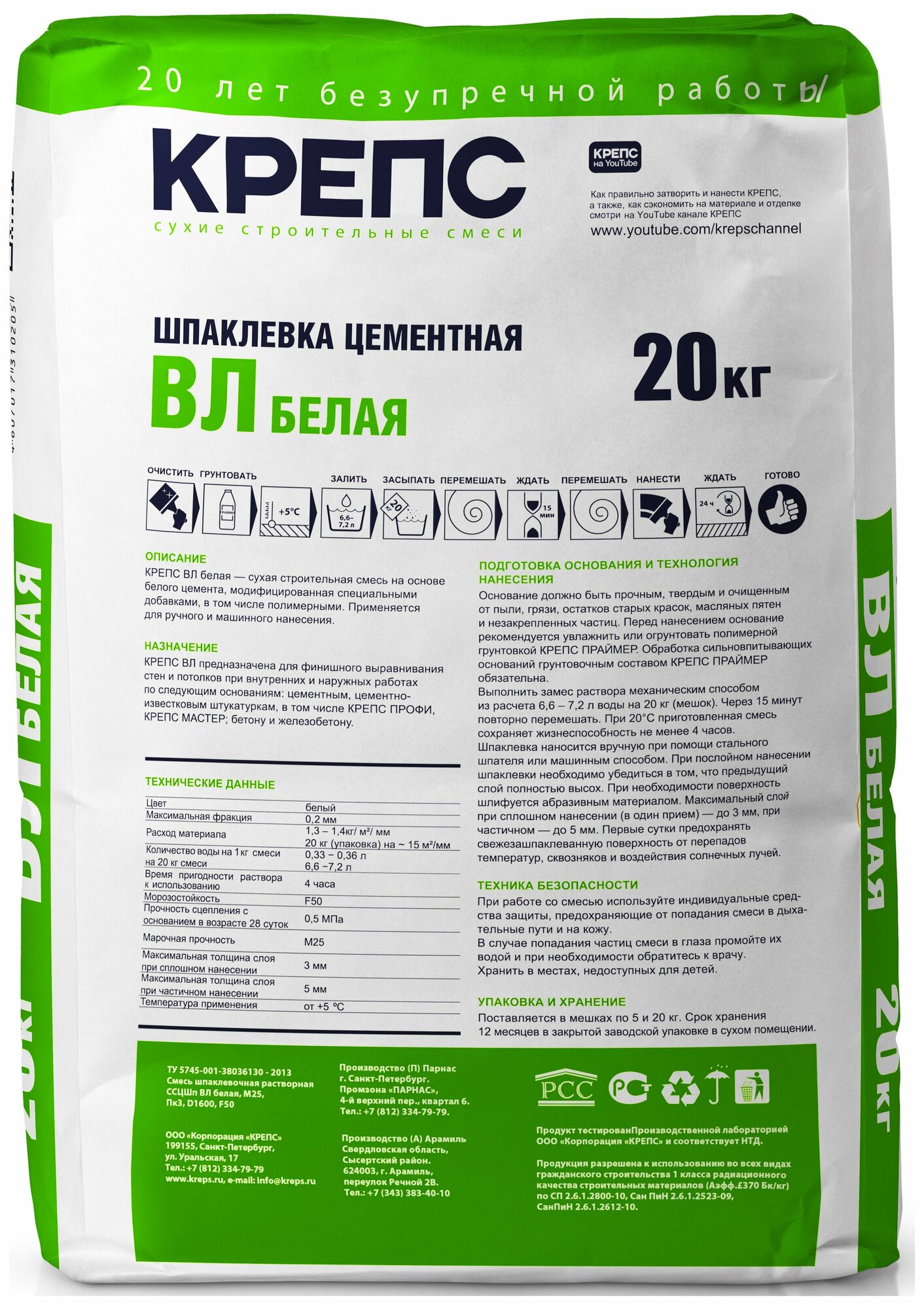 Шпаклевка цементная ВЛ белая 20 кг интересное: