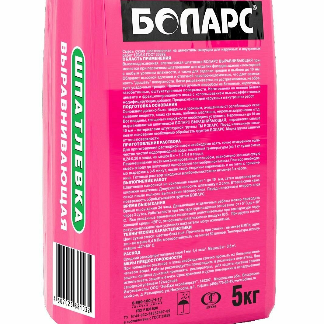 Шпатлевка выравнивающая 5 кг боларс 00000007455