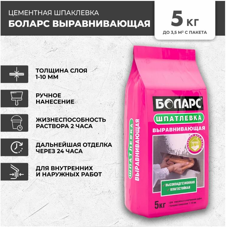 Шпаклевка цементная боларс Выравнивающая светло-бежевая 5 кг интересное: