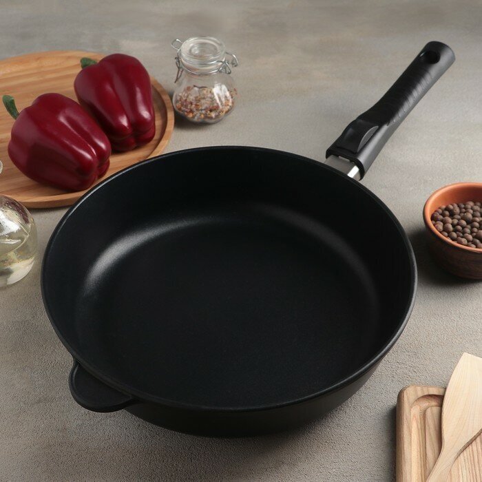 Сковорода алюминиевая Нева Металл Посуда "Ферра" индукция 28 см с антипригарным покрытием, съемная ручка 59028