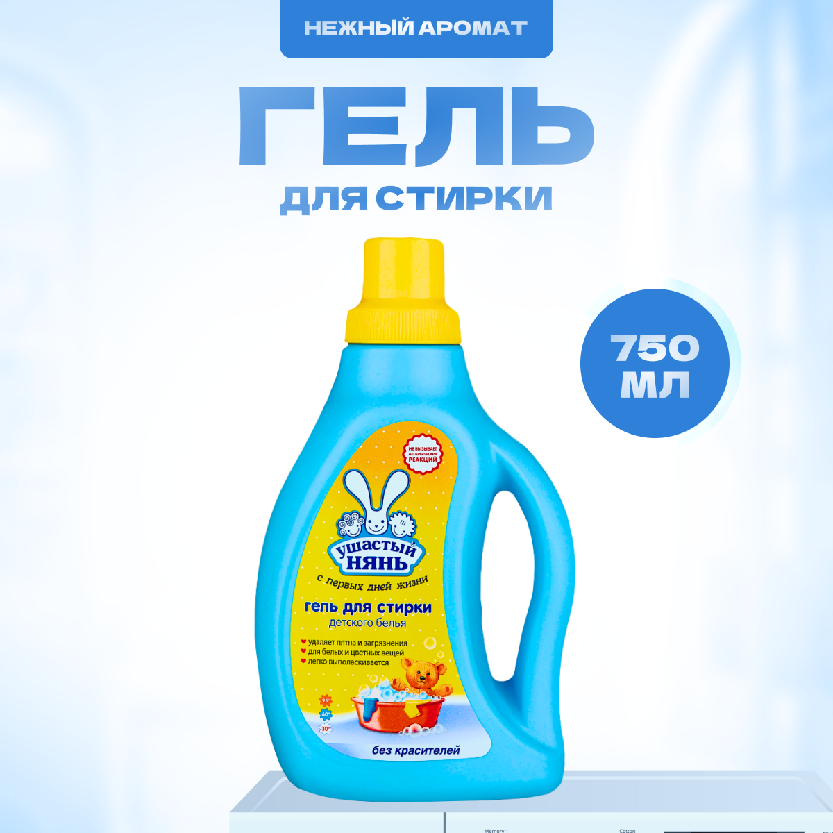 Гель для стирки Ушастый Нянь для детского белья, 0.75 л, 0.75 кг, бутылка