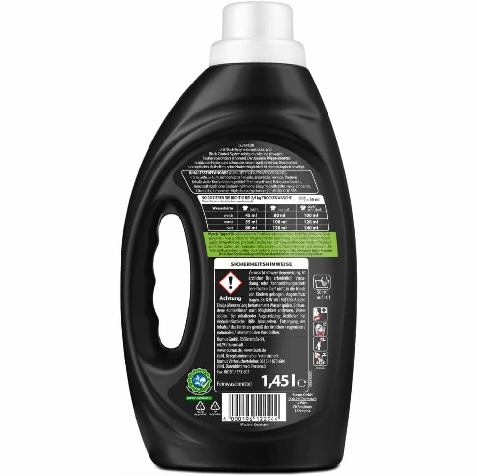Жидкое синтетическое средство BURTI Noir для стирки черного и темного белья 1,45 литра