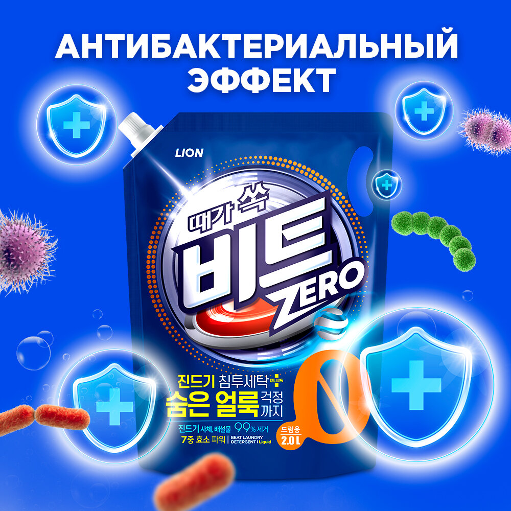 Жидкое средство для стирки LION для автоматической стирки "BEAT DRUM", мягкая упаковка, 2000 мл