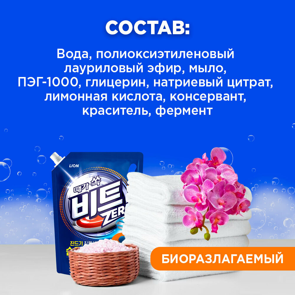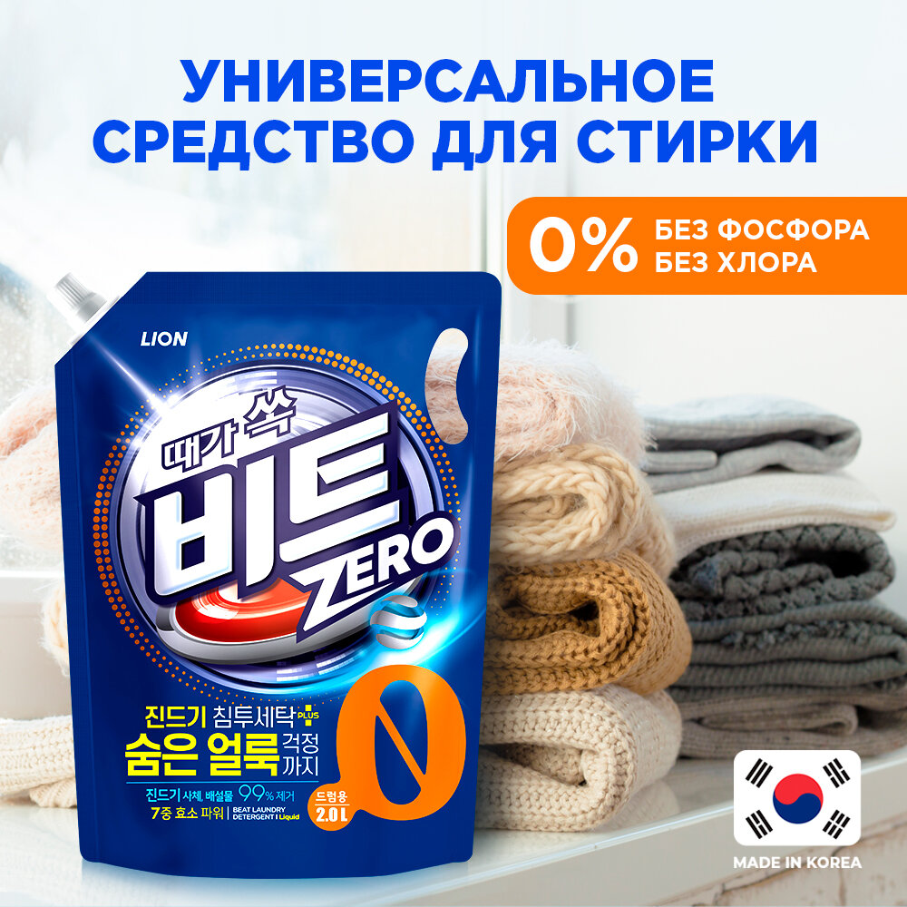 Жидкость для стирки LION Beat Drum, 2.155 кг, 2 л, без отдушки, природа и свежесть, для синтетических тканей, для джинсовых тканей