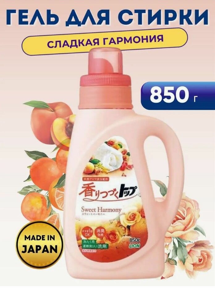 Lion Жидкое средство для стирки белья Top Sweet Harmony со сладким цветочным ароматом, 850 мл