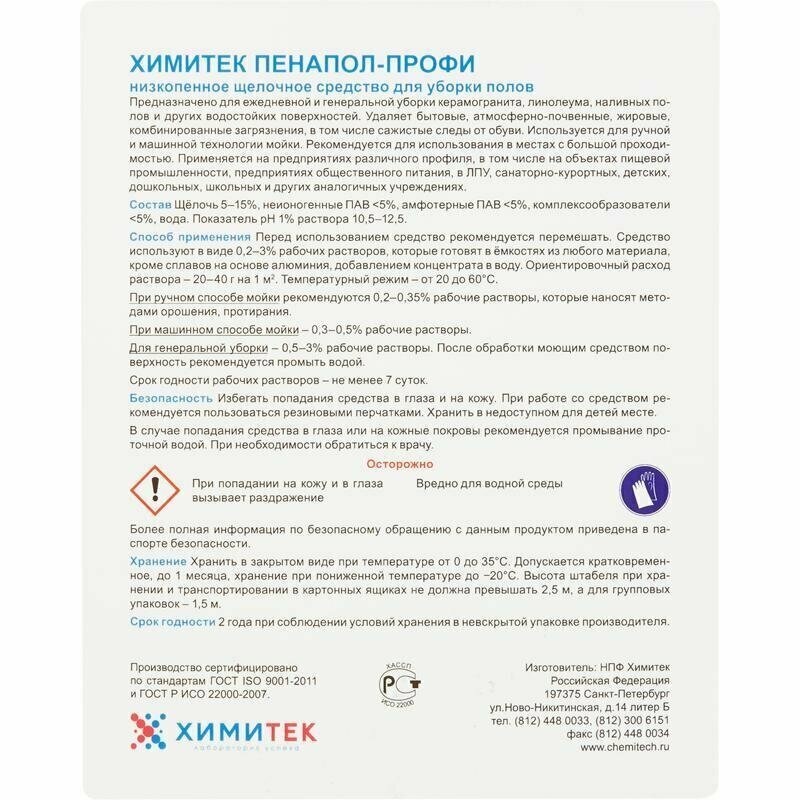 Профессиональная химия химитек пенапол-профи 5л,ср-во д/мойки пола