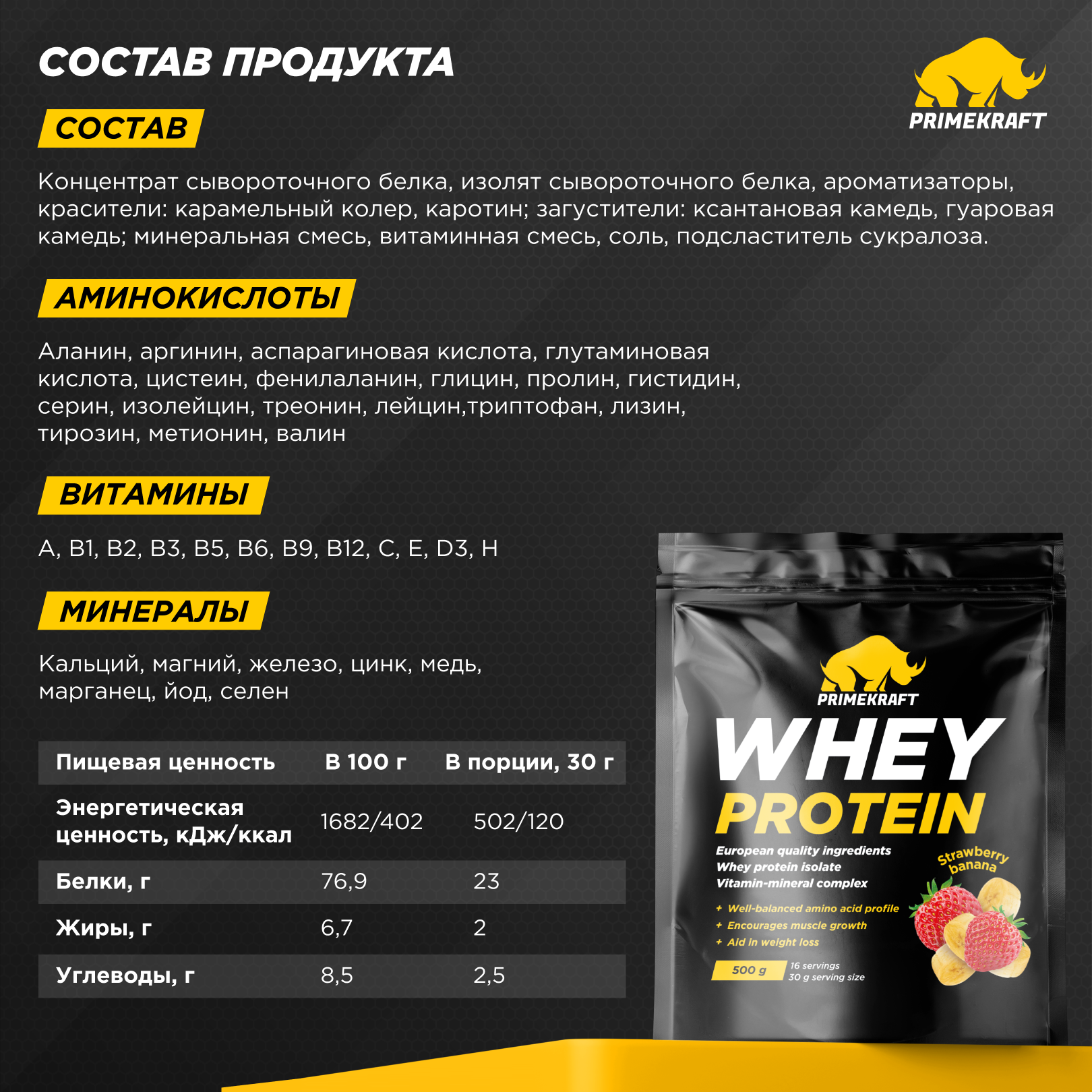 Протеин Prime-Kraft Whey 500г, вкус: клубника и банан