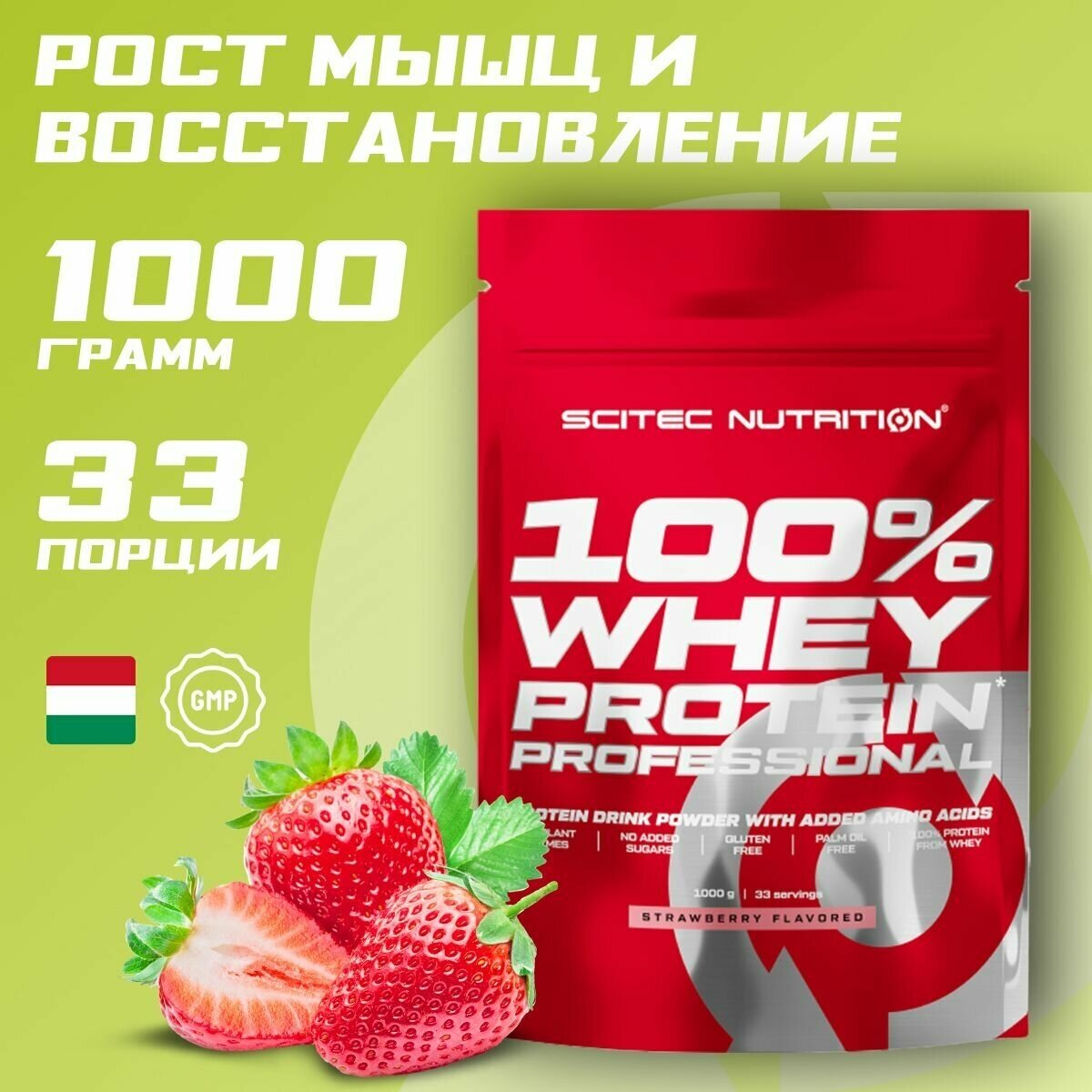 Купить Scitec Nutrition 100% Whey Protein Professional (1000 гр) (Клубника-белый шоколад)