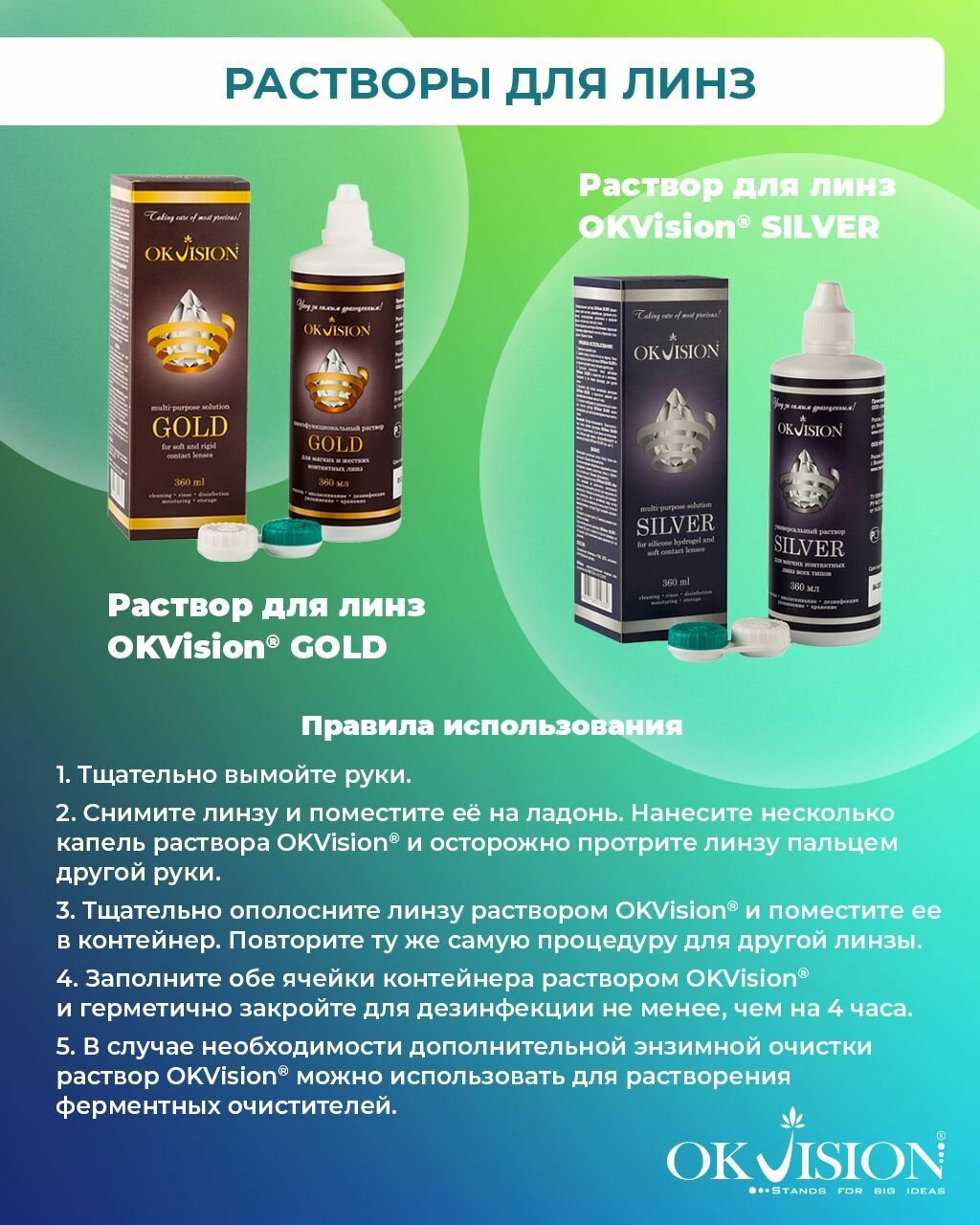 Раствор для контактных линз OKVision SILVER, 360 мл. + контейнер - 2 шт.