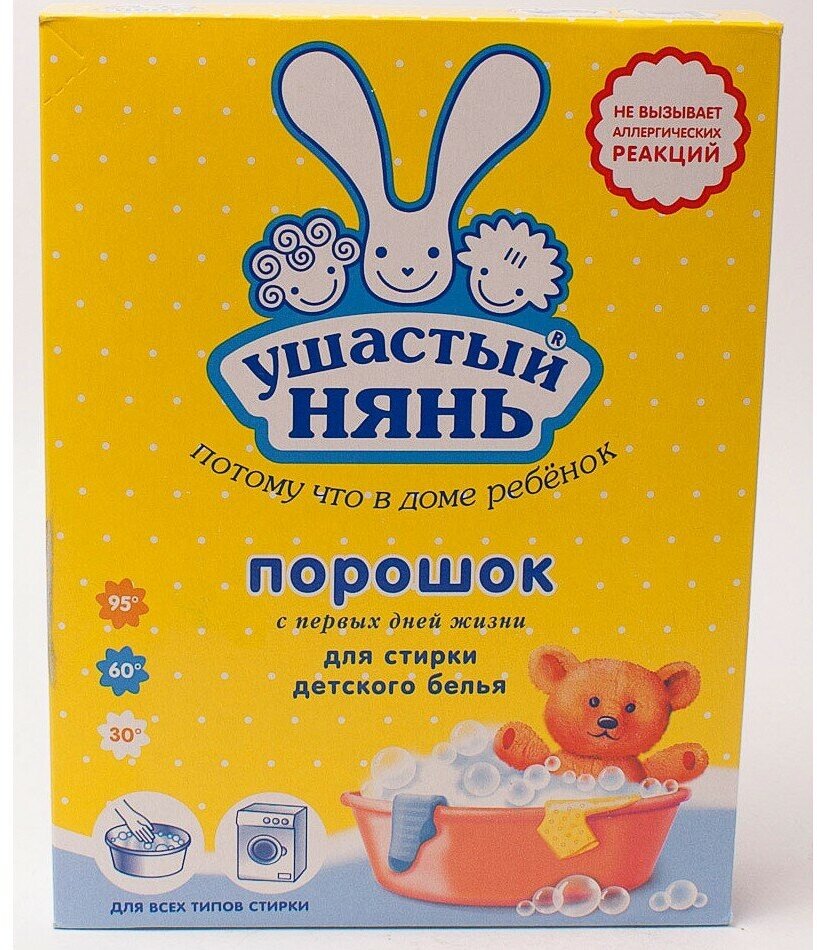 | Отзыв: | Так как я аллергик, пользуюсь только детским порошком, ушастик отлично подходит, не вызывает раздражений и зуда |